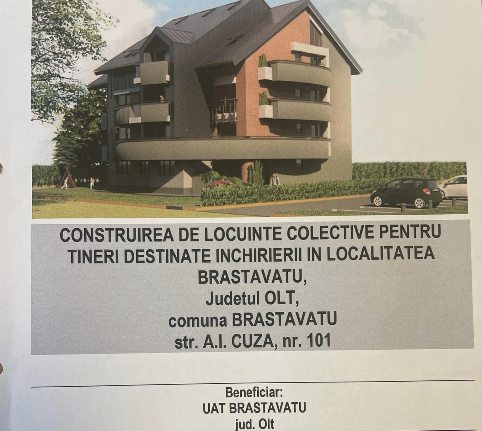 ”Am observat interesul crescut pentru proiectul ce implică construirea celor 15 apartamente pentru tinerii din comuna Brastavățu . Vă anunț că a fost aprobată finanțarea și că a fost semnat contractul pentru demararea lucrărilor. Este un pas important că pe strada A.I.Cuza nr. 101 va fi ridicat primul bloc de locuințe pentru tineri. Acest proiect este important pentru comunitatea noastră, pentru că tinerii trebuie să rămână acasă pentru a crea un viitor comunei. Este un proiect pe care mi l-am asumat încă din anul 2022 și pe care l-am susținut cu succes în Comisia tehnico-economică din cadrul Agenției Naționale pentru Locuințe. Acest proiect privind realizarea de locuințe pentru tineri se înscrie pe lista proiectelor finalizate în curs de implementare ce vor duce la dezvoltarea și înfrumusețarea comunei. Prin implementarea acestor proiecte urmarim să asigurăm o locuință tinerilor și familiilor de tineri, ale căror venituri nu le permit accesul la o locuință în condițiile pieței, tineri care reprezintă o forță de muncă pentru Brastavățu.” a transmis primarul Cici Constantin Oprea.