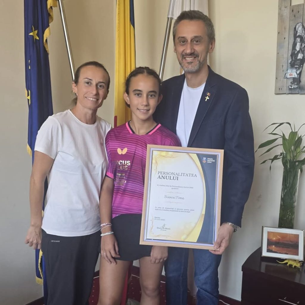 Primarul Municipiului Slatina, Mario De Mezzo, a oferit personal diploma și trofeul pentru titlul de „Personalitatea Anului” tinerei campioane Bianca Toma, ca semn de recunoaștere a rezultatelor sale remarcabile în tenisul de masă.