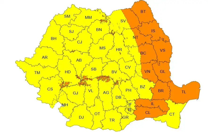 Mai multe județe din estul și sud-estul țării, sub Cod portocaliu