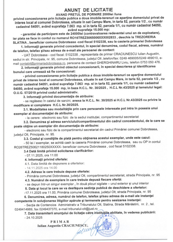 Publicitate Anunț Dobroteasa 24 octombrie 2025 Oana Petcu Partajează asta: Dă clic pentru a partaja pe Facebook(Se deschide într-o fereastră nouă) Facebook Mai mult Dă clic pentru a partaja pe LinkedIn(Se deschide într-o fereastră nouă) LinkedIn Dă clic pentru a partaja pe Reddit(Se deschide într-o fereastră nouă) Reddit Dă clic pentru a partaja pe Tumblr(Se deschide într-o fereastră nouă) Tumblr Dă clic pentru a partaja pe Pinterest(Se deschide într-o fereastră nouă) Pinterest Dă clic pentru partajare pe Telegram(Se deschide într-o fereastră nouă) Telegram Dă clic pentru a partaja pe X(Se deschide într-o fereastră nouă) X Dă clic pentru partajare pe WhatsApp(Se deschide într-o fereastră nouă) WhatsApp Continue Reading Previous ANUNȚ S.C. FABRICA DE PROCESARE A LAPTELUI PRO-LACT BUSCA S.R.L. More Stories Publicitate ANUNȚ S.C. FABRICA DE PROCESARE A LAPTELUI PRO-LACT BUSCA S.R.L. 23 octombrie 2025 Oana Petcu Publicitate Anunț 17 octombrie 2025 Anca Spiridon Publicitate Anunț 16 octombrie 2025 Anca Spiridon Publicitate ANUNȚ PUBLIC 13 octombrie 2025 Oana Petcu Publicitate ANUNȚ 13 octombrie 2025 Oana Petcu Publicitate ANUNȚ 13 octombrie 2025 Oana Petcu