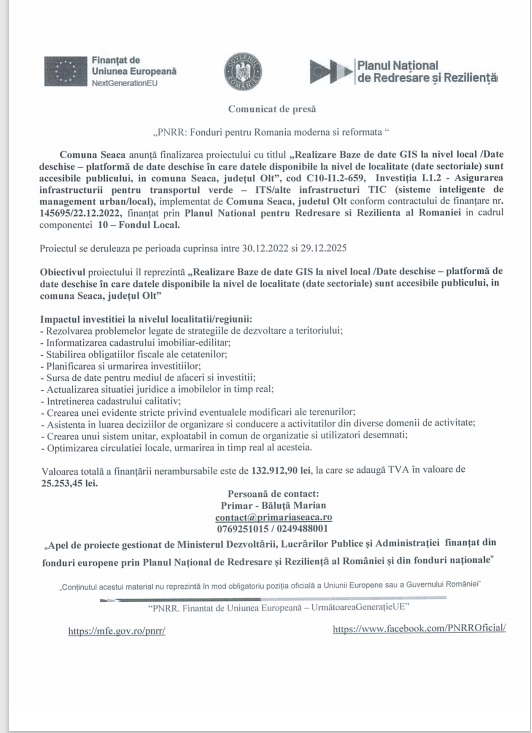ANUNȚ SEACA