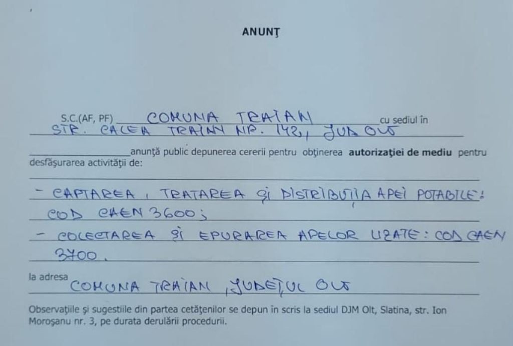 Actualitate Anunț Traian 17 octombrie 2025 Oana Petcu Anunț public Partajează asta: Dă clic pentru a partaja pe Facebook(Se deschide într-o fereastră nouă) Facebook Mai mult Dă clic pentru a partaja pe LinkedIn(Se deschide într-o fereastră nouă) LinkedIn Dă clic pentru a partaja pe Reddit(Se deschide într-o fereastră nouă) Reddit Dă clic pentru a partaja pe Tumblr(Se deschide într-o fereastră nouă) Tumblr Dă clic pentru a partaja pe Pinterest(Se deschide într-o fereastră nouă) Pinterest Dă clic pentru partajare pe Telegram(Se deschide într-o fereastră nouă) Telegram Dă clic pentru a partaja pe X(Se deschide într-o fereastră nouă) X Dă clic pentru partajare pe WhatsApp(Se deschide într-o fereastră nouă) WhatsApp Continue Reading Previous Compania de Apă Olt, apel la cetățeni More Stories Actualitate Compania de Apă Olt, apel la cetățeni 17 octombrie 2025 Anca Spiridon Actualitate Primul supermarket a fost inaugurat, în comuna Perieți 17 octombrie 2025 Anca Spiridon Actualitate Deputatul Gigel Știrbu: Am votat Legea prosumatorului – energie verde cu beneficii reale pentru cetățeni 16 octombrie 2025 Oana Petcu Actualitate Cupa Slatinei la Înot revine în forță! Peste 100 de copii, în competiția tradițională de sâmbătă 16 octombrie 2025 Oana Petcu Actualitate Balș: se caută Asistent medical comunitar debutant 16 octombrie 2025 Anca Spiridon Actualitate Un supliment alimentar popular, care se ia începând cu luna octombrie, poate avea un efect neașteptat, avertizează experții 15 octombrie 2025 Oana Petcu