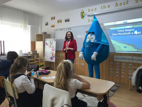Apic, mascota Companiei de Apă Olt a transmis mesajul din acest an al Zilei Mondiale a Apei – „Apă pentru pace”- Albinuțelor de la Clasa Pregătitoare de la Liceul „Nicolae Titulescu” din municipiul Slatina.