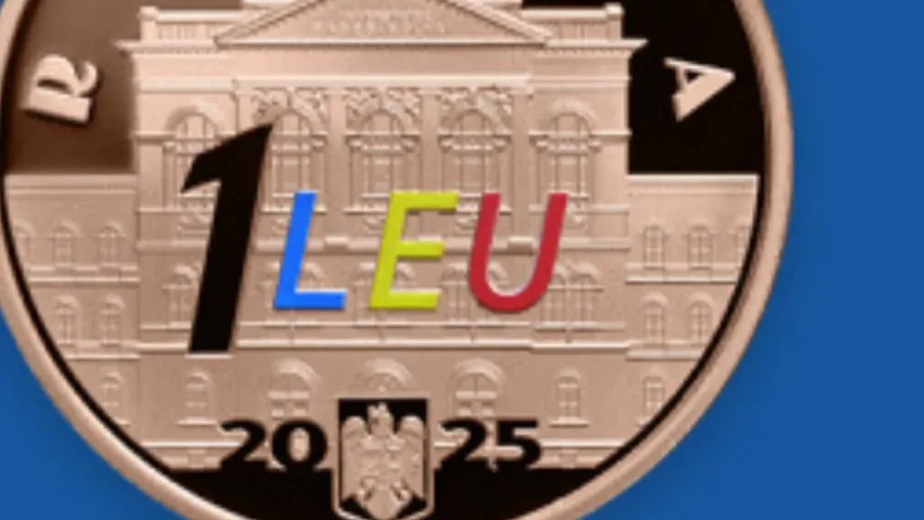 Aversul monedei prezintă frontonul Universităţii „Babeş-Bolyai” din Cluj-Napoca, inscripţia „ROMANIA” în arc de cerc, valoarea nominală „1 LEU”, stema României şi anul de emisiune „2025”.