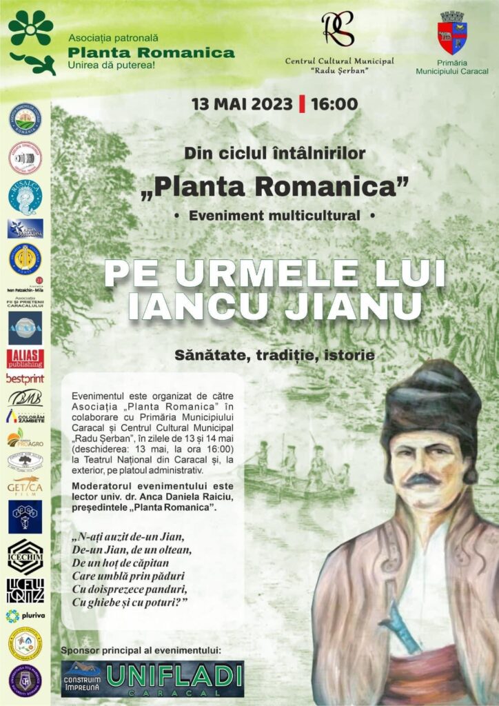 În perioada 13-14 mai, în municipiul Caracal se va avea loc evenimentul „Pe urmele lui Iancu Jianu – sănătate, tradiție, istorie”. Evenimentul este organizat de Asociația „Planta Romanica” în colaborare cu Primăria Municipiului Caracal și Centrul Cultural Municipal „Radu Șerban”.