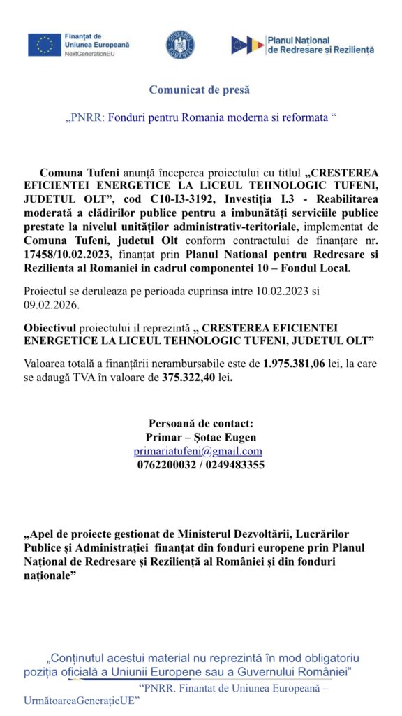PublicitateActualizat: 20 aprilie 2023Comunicat de presăAutor Anca Spiridon20 aprilie 2023AcțiuneFacebookXPinterestVKWhatsAppLinkedinEmailTelegramCopy URL Îți recomandămActualitateOana Petcu - 2 martie 202686% din cele 105 construcții ilegale depistate pe plaje vara trecută au fost demolate de operatorii economici. ABADL cere despăgubiriActualitateOana Petcu - 2 martie 2026Alimentele de bază s-ar putea scumpi din nou în această lună. Consultant fiscal: „Costurile mai mari se vor vedea direct la raft”ActualitateOana Petcu - 2 martie 2026SRI lansează un proiect pentru prevenirea radicalizării tinerilor. Cât costă și cum va funcționa programul PREVISIO 2Anca SpiridonAcțiuneFacebookXPinterestVKWhatsAppLinkedinEmailTelegramCopy URL Articolul precedentSpitalul Județean de Urgență Slatina caută mediciArticolul următorMILITARU MARINELA MĂDĂLINA din comuna Milcov, a dispărut - Advertisement - LĂSAȚI UN MESAJAutentificați-vă pentru a lăsa un comentariu Gazeta Publică- Advertisement -Știrile Zilei SportFotbal: CSM Slatina, victorie pe terenul celor de la CS Dinamo București Anca Spiridon - 20 aprilie 2026 NaţionalUltima zi pentru bonificația de 3% la impozitul pe venit Gazeta Publică - 14 aprilie 2026 EvenimentCabaline lăsate nesupravegheate pe Drumul Expres 12. Doi bărbați din Piatra-Olt, sancționați de polițiști Gazeta Publică - 19 aprilie 2026 ActualitateExplozia chiriilor în Europa: În ce țări au crescut cel mai mult prețurile în 2025 și unde se situează România Oana Petcu - 15 aprilie 2026 - Advertisement -Citește mai multeAnunț public Publicitate Gazeta Publică - 20 aprilie 2026 Vulpeni – ANUNȚ PUBLIC Publicitate Gazeta Publică - 20 aprilie 2026 PRIMĂRIA DRĂGĂNEȘTI-OLT Publicitate Cristina Ciocan - 6 aprilie 2026 Anunț Morunglav Publicitate Gazeta Publică - 3 aprilie 2026 - Advertisement -