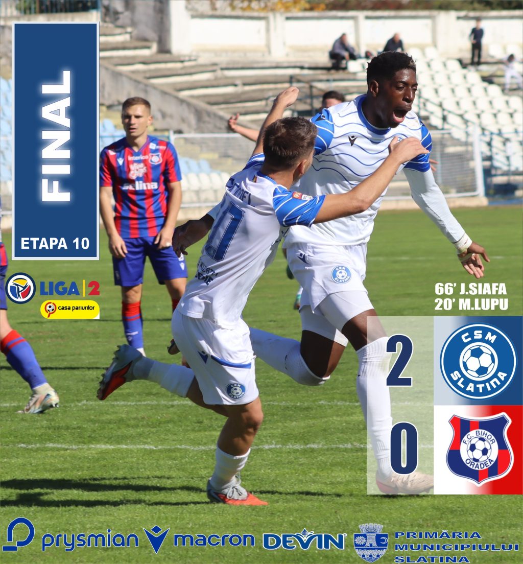 CSM Slatina a reușit să o învingă pe FC Bihor, scor 2-0, în cadrul etapei a 10-a din Liga 2.