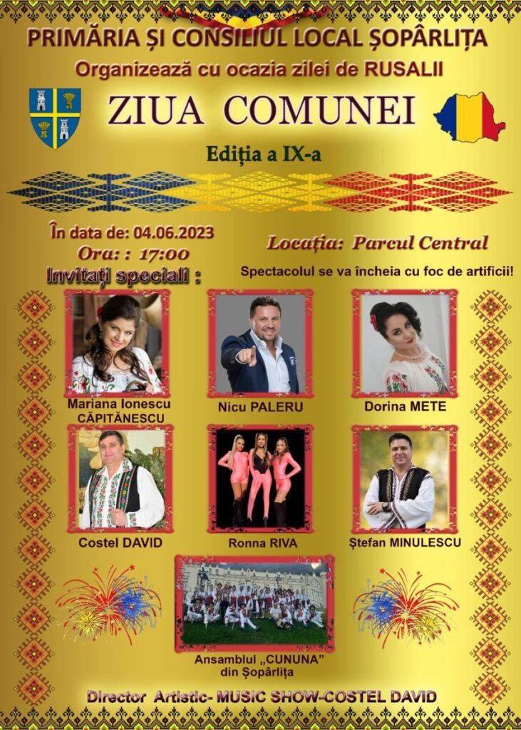 Pe scenă vor urca artiști mari, Marian Ionescu Căpitănescu, Nicu Paleru, Dorina Mete, Costel David, Ștefan Minulescu, Ronna Riva și Ansamblul Cununa din Șopârlița.