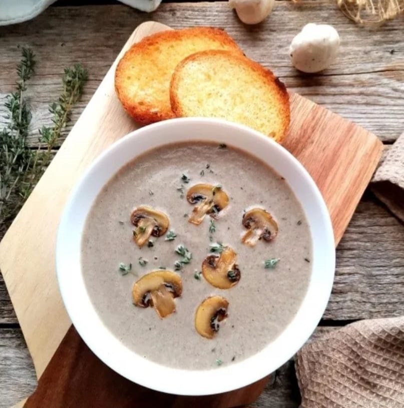 După cele 10 minute, opriți focul și scoateți din supă aproximativ 250 ml (asigurați-vă că includeți și ciuperci întregi) și puneți deoparte.