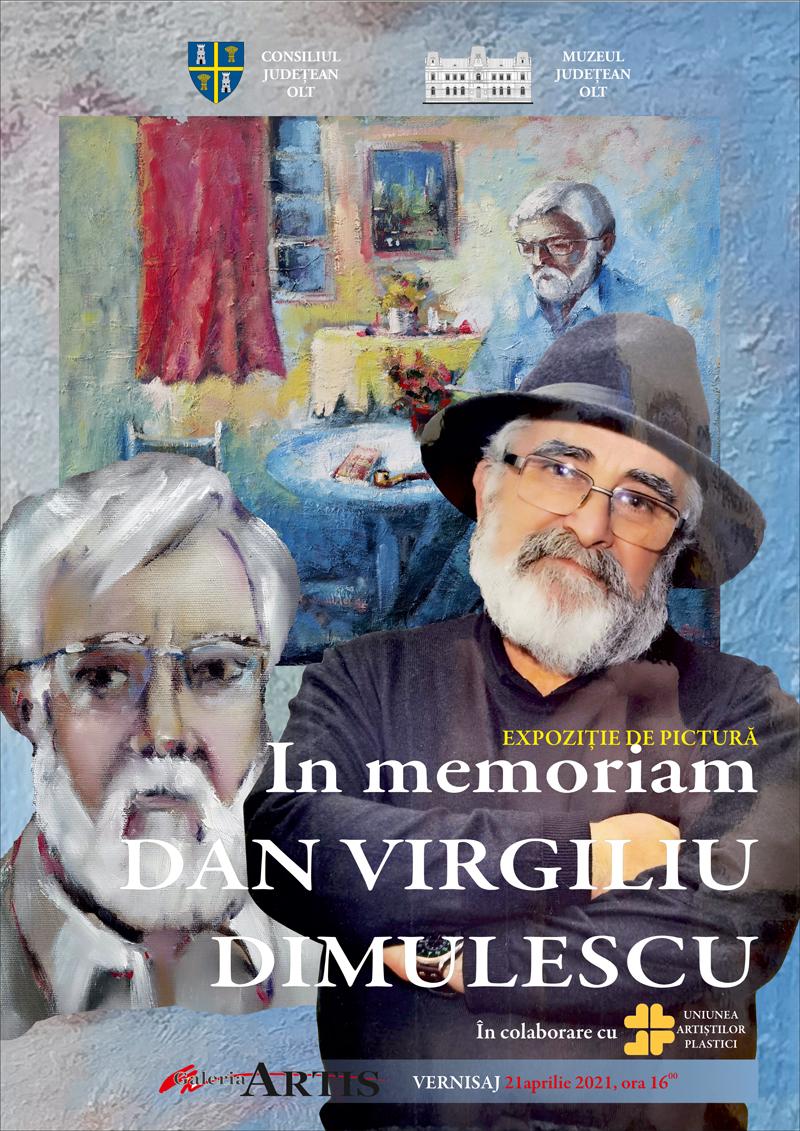 Muzeul Judeţean Olt va găzdui miercuri, 21 aprilie 2021, cu începere de la ora 16:00, la Galeria „ARTIS” expoziția de pictură, „În memoriam DAN VIRGILIU DIMULESCU”.