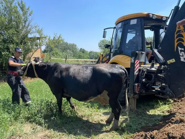Pompierii olteni au fost îngerii păzitori ai unei bovine care a rămas blocat într-o fosă, în Găneasa. Animalul a fost salvat și predat proprietarului.