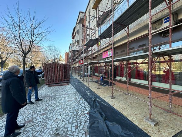Acesta împreună cu deputatul PSD Adrian Chesnoiu au fost prezenți la demararea lucrărilor care au debutat cu montarea schelelor pe fațada primelor 3 scări de bloc ce vor intra în reparații.