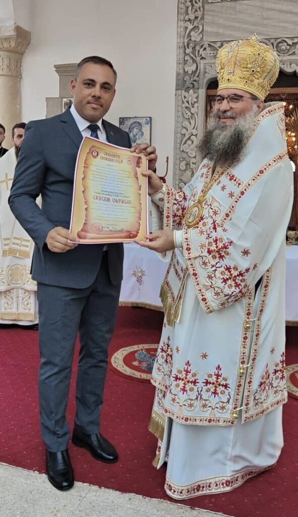 “Am fost prezent astăzi la Mănăstirea Brâncoveni, ctitorie a Sfinților Martiri Brâncoveni, ocazie cu care Preasfințitul Sebastian, Episcop al Slatinei și Romanaților mi-a acordat cea mai inaltă distincție, Crucea Oltului, pentru sprijinul acordat lucrărilor de la Catedrală Episcopală.