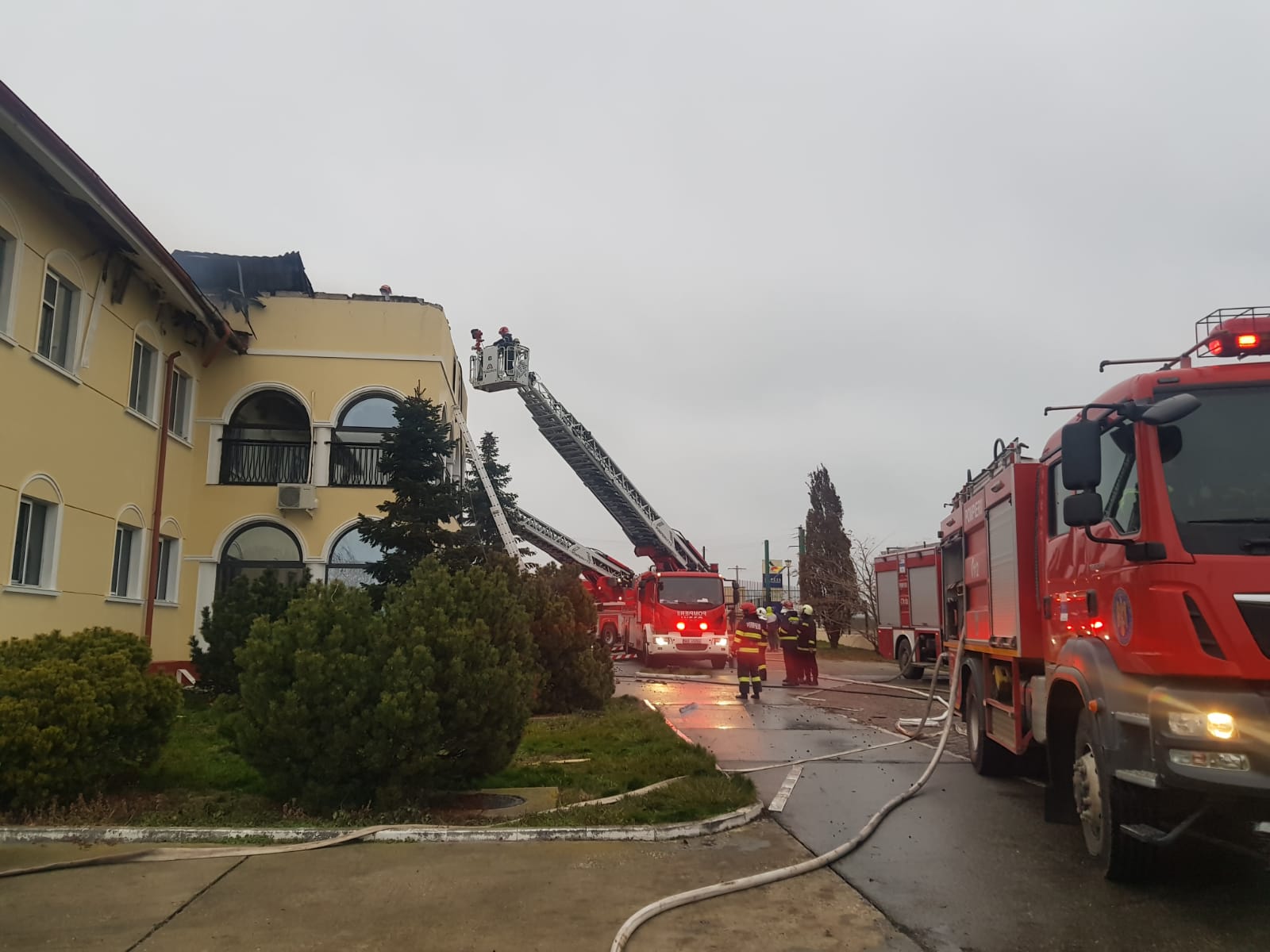 La sosirea primelor echipaje, incendiul se manifesta la acoperișul clădirii, cu flacără și degajări mari de fum, cu posibilitate de propagare la întreaga construcție. De asemenea, în apropierea clădirii se aflau două rezervoare de gaz petrolier lichefiat, fiind asigurat un dispozitiv pentru protecția acestora.