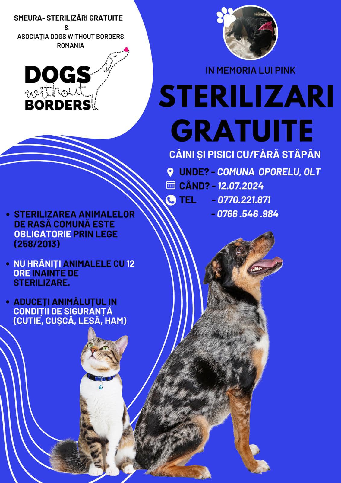 Primăria comunei Oporelu organizează în data de 12 iulie o nouă campanie gratuită de sterilizare a câinilor și pisicilor cu stăpân.