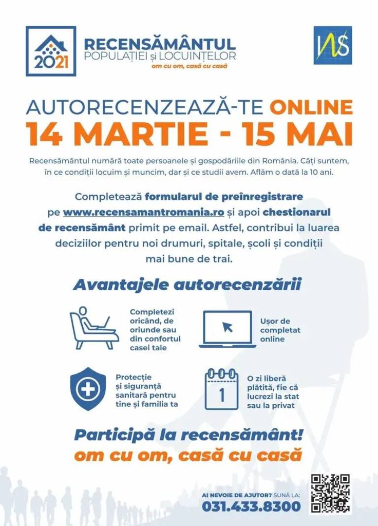 Pentru alte informații privind desfășurarea Recensământului Populaţiei şi Locuinţelor, runda 2021, pot fi consultate și pe site-ul www.recensamantromania.ro. Pe acest site a fost inclusă şi o secţiune de ȋntrebări, grupate pe 11 categorii, unde găsiți răspunsuri la cele mai frecvente întrebări referitoare la recensământ.