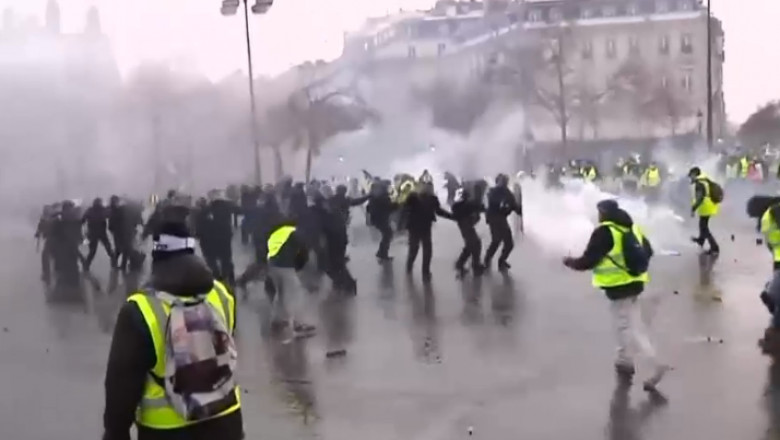 Forțele de ordine s-au confruntat cu protestatarii pe străzile Parisului. Polițiștii parizieni au folosit gaze lacrimogene și bastoanele din dotare împotriva manifestanților care au aruncat cu pietre și bucăți de bordură. Angajații din sectoare precum transporturile, educația și energia din întreaga țară au intrat în grevă și participă la proteste. Pe aeroportul Orly 20 la sută dintre curse au fost anulate. Iar în Paris, doar două linii de metrou au funcționat dimineață. De asemenea, mai multe trenuri nu au circulat între orașe importante din Franța, folosite de navetiști.