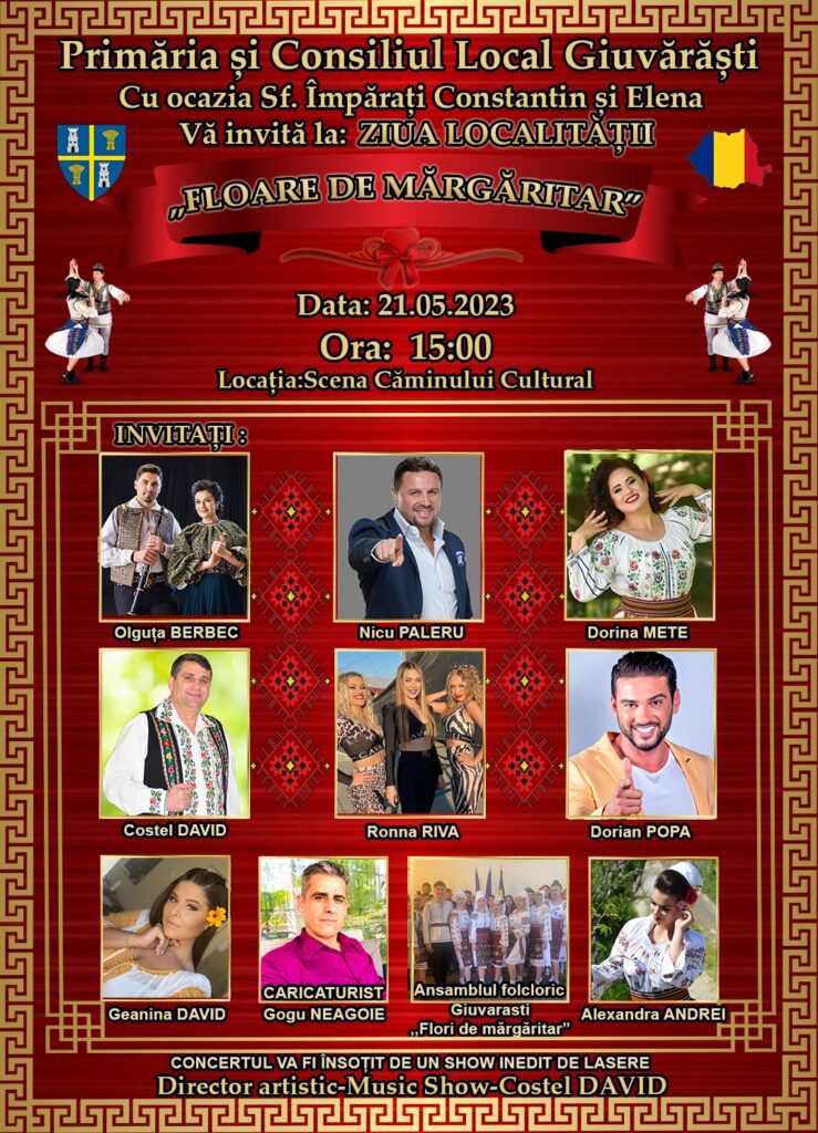 Artiștii precum Olguța Berbec, Nicu Paleru, Dorina Mete, Costel David, Ronna Riva, Dorian Popa, Geanina David și Alexandra Andrei vor urca pe scenă pentru a cânta și a-i încânta pe cei prezenți.