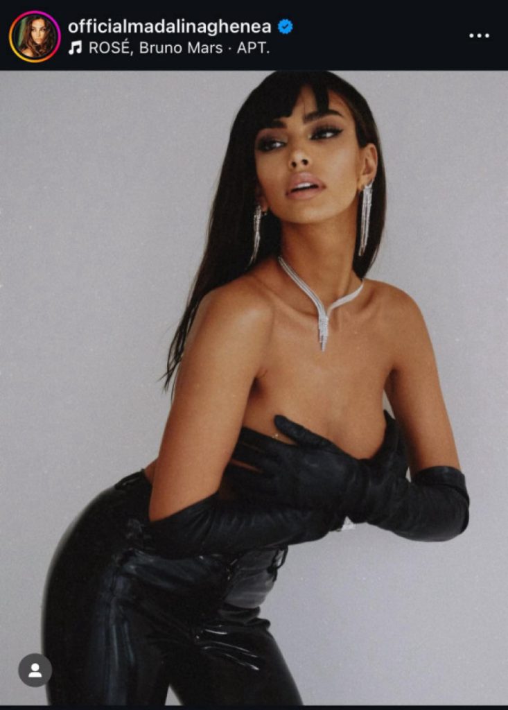 Mădălina Ghenea a atras din nou toate privirile cu o apariție spectaculoasă pe rețelele sociale. Actrița și modelul de origine română a publicat pe Instagram câteva fotografii în care apare topless, purtând doar o pereche de pantaloni din latex, bijuterii prețioase și mănuși lungi din piele. Aceasta și-a acoperit bustul cu brațele într-un gest plin de senzualitate.
