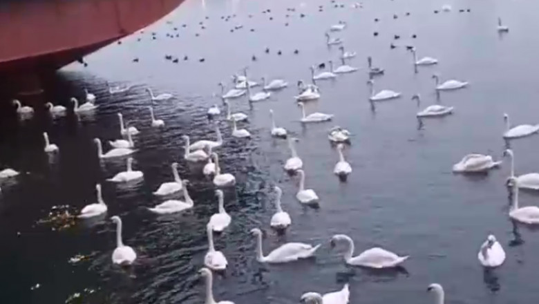 Sute de lebede au sosit în Portul Constanța și au oferit o priveliște spectaculoasă. Bazinul portuar este foarte liniștit și le oferă frumoaselor înaripate o protecție în plus, așa că multe dintre ele probabil că își vor petrece iarna în port.