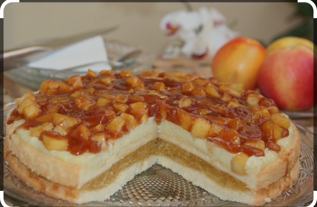 Pentru crema 1, merele se curăță, se dau pe răzătoarea mare, apoi se pun într-o cratiță cu zahăr, zeamă de lămâie și zahăr vanilat și se călesc. Gelatina se hidratează în apă și se amestecă cu merele călite. Compusul rezultat se toarnă între cele două blaturi de tort.