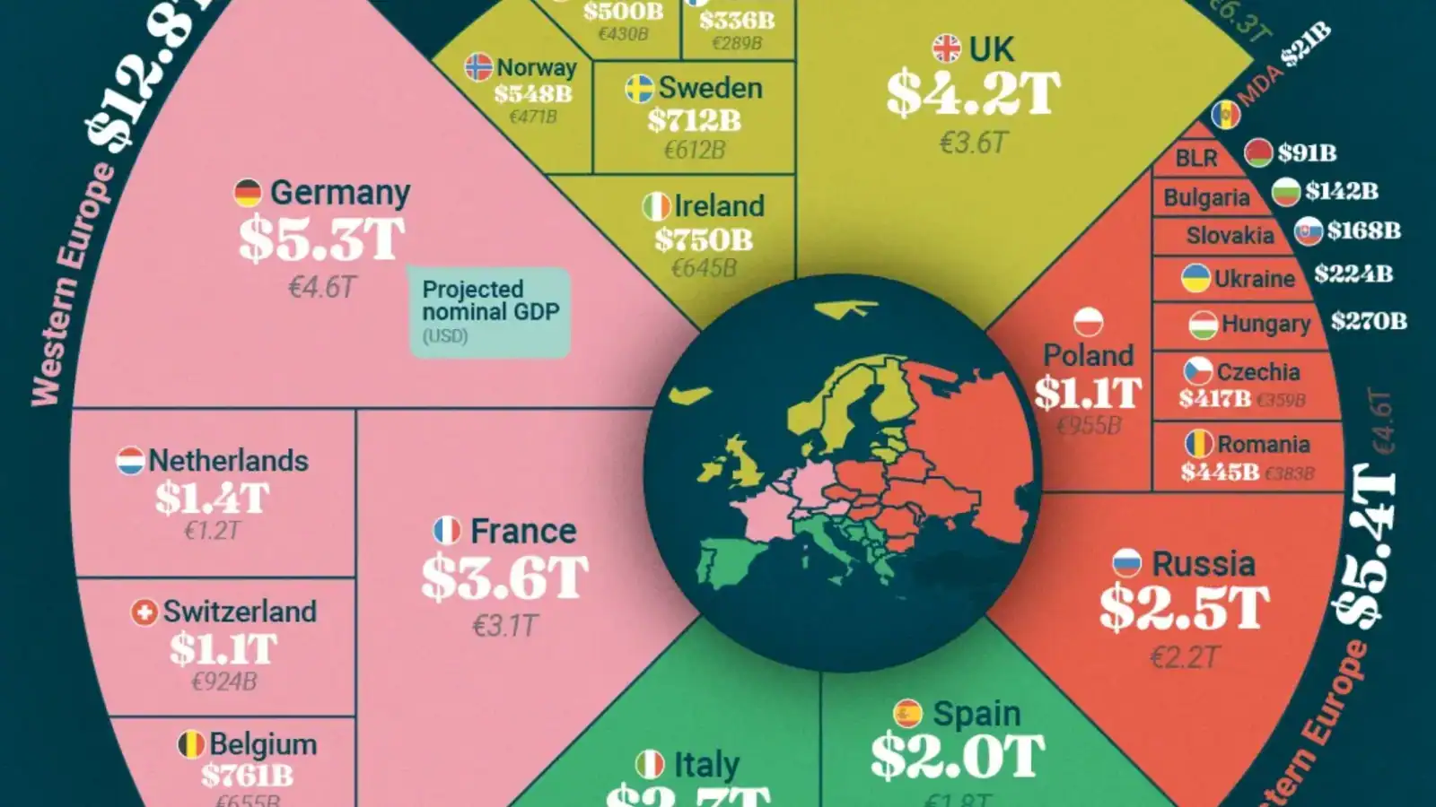 Deși creșterea economică în nucleul dur al Europei de Vest a fost moderată în ultimii doi ani, țări precum Luxemburg, Irlanda și Elveția sunt proiectate să rămână în topul clasamentului PIB-ului pe cap de locuitor până în 2030.