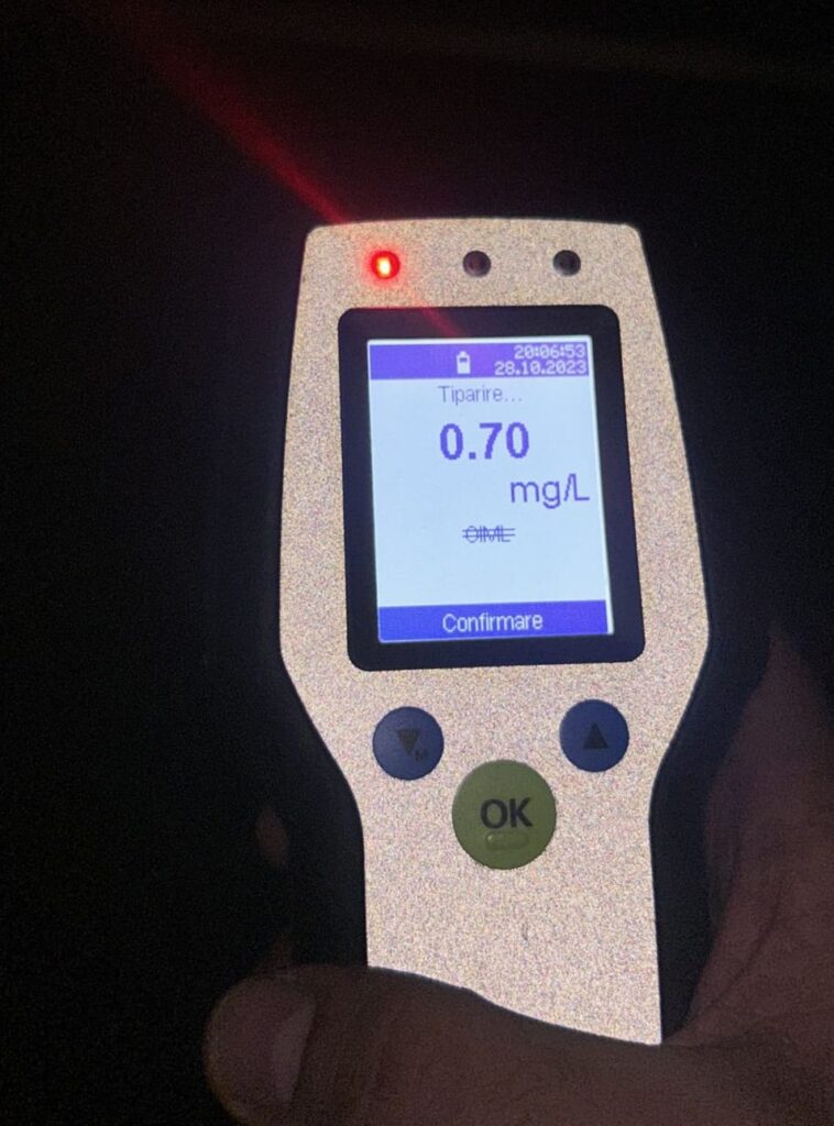 Întrucât conducătorul auto emana halenă alcoolică, polițiștii au procedat la testarea acestuia cu aparatul etilotest, rezultând o concentrație alcoolică de 0,70 mg/l alcool pur în aerul expirat.
